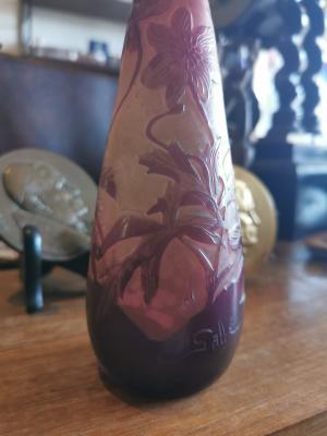 Petit vase soliflore emile gallé époque Art Nouveau Art déco a décor floral dégagé à l acide signé