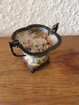 Vienne autriche 19eme siecle petite coupe a décor romantique en argent émaillé # achat antiquité expert Sanary-sur-Mer bandol saint cyr six fours la seyne ollioules toulon 83 antiquaire